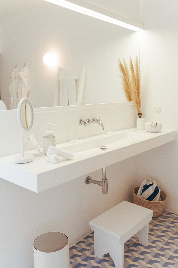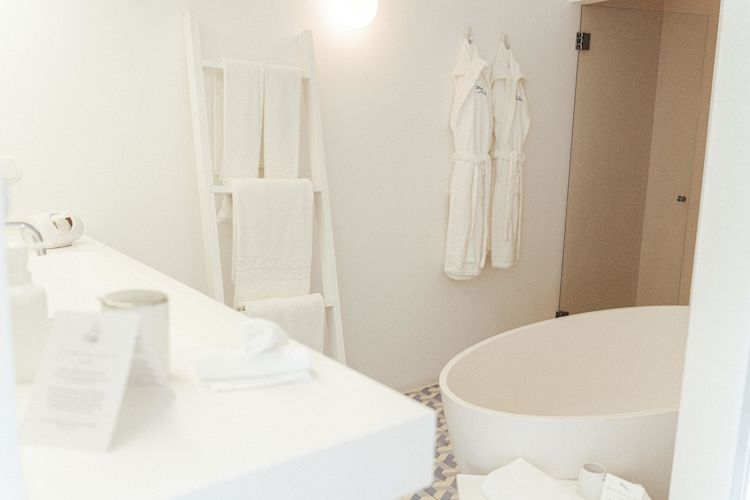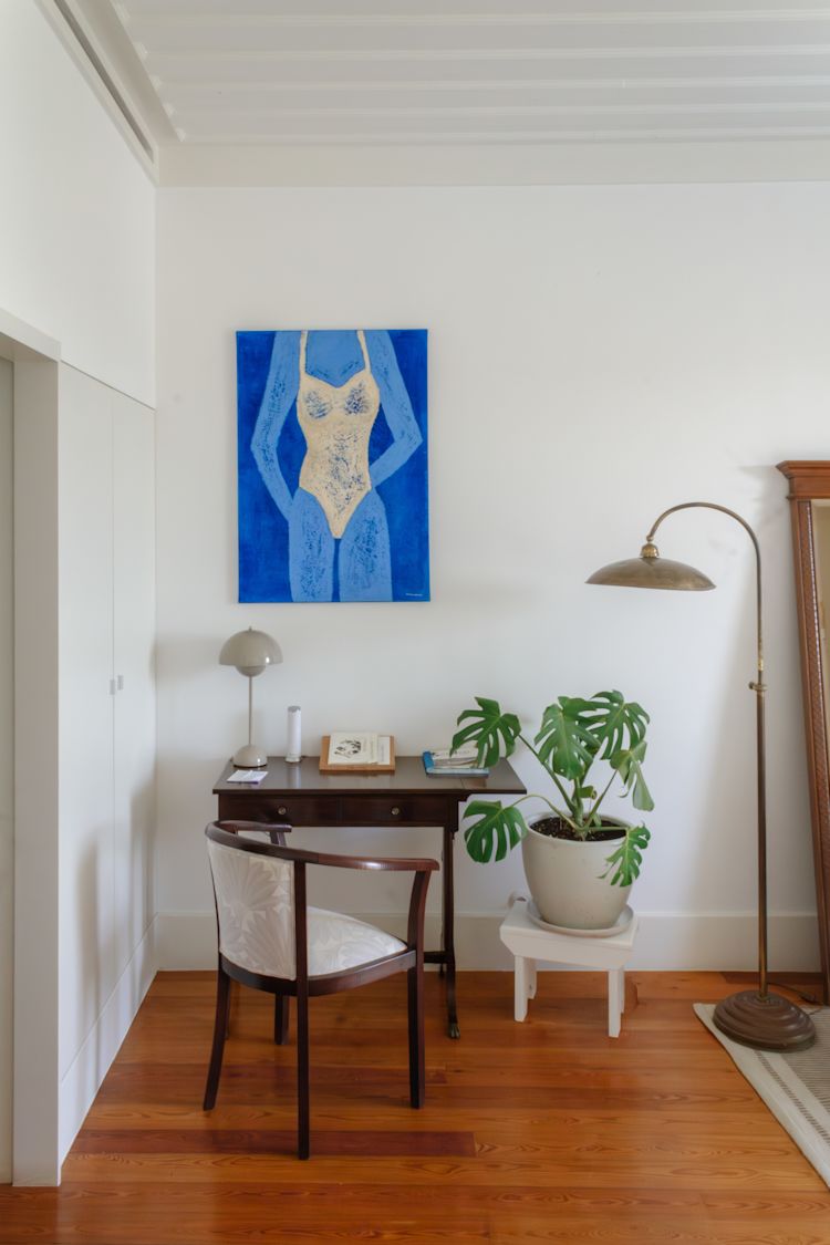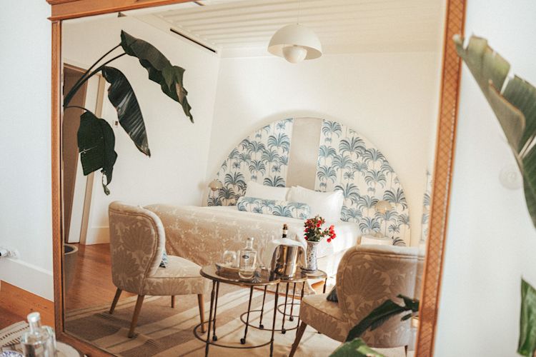 Spacious, full of light and with a French balcony overlooking the garden and the pool, the Horta Suite with its 37m² combines vintage, antiquities and tropical bright fabrics.